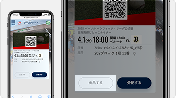 シーズンシートチケット画面でリセール出品したいチケットの「出品する」ボタンを選択してください。